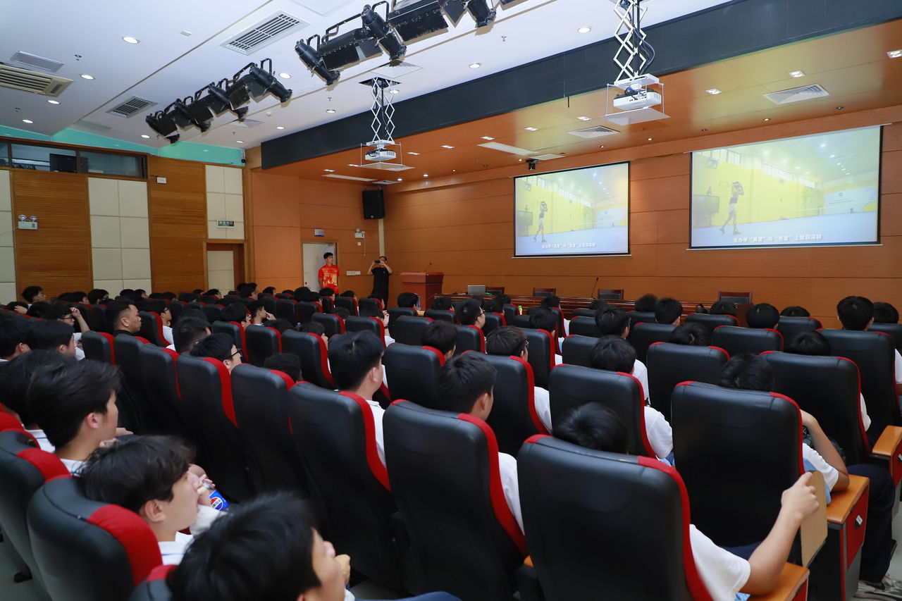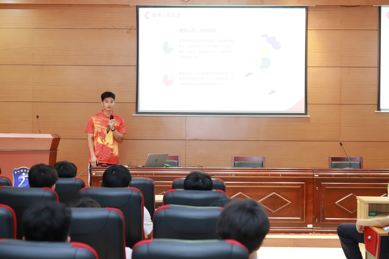 随后,学子们来到了我校学术报告厅观看了我校招生宣传片,了解了我校各专业信息及发展规划,让大家明晰专业设置与发展方向。22级体育教育学院郑浩东同学分享高考备考经验、大学生活感悟,为学子提供借鉴,赢得阵阵掌声。